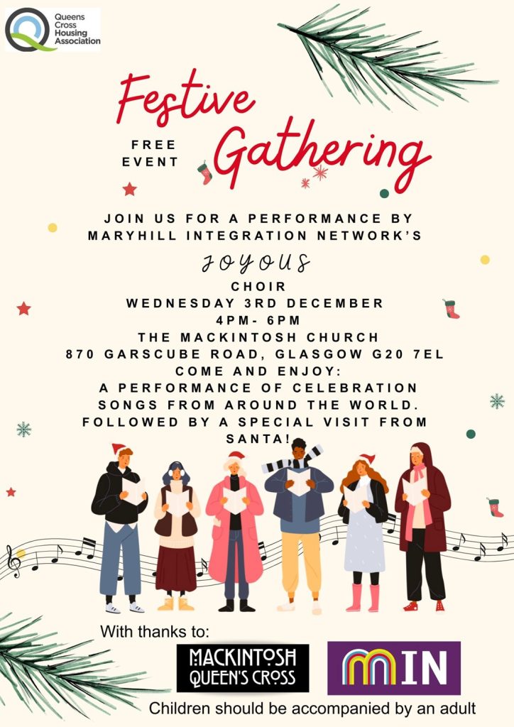 We are delighted to host a festive gathering with a performance by the Maryhill Integration Networks Choir.